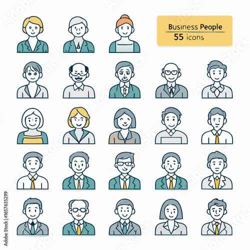 Corporate Team Vector Icons, Diverse Business People Illustrations