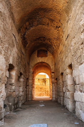 Corridor in ruins of the largest coliseum, North Africa. El Jem,Tunisia, UNESCO