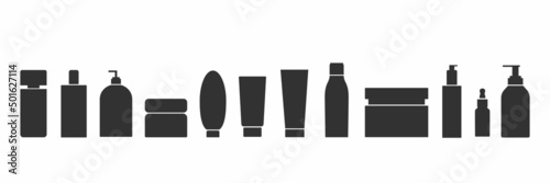 Cosmetic plastic bottle icon set for packaging design. Vector stock illustration isolated on white background for beauty industry, product label pack.