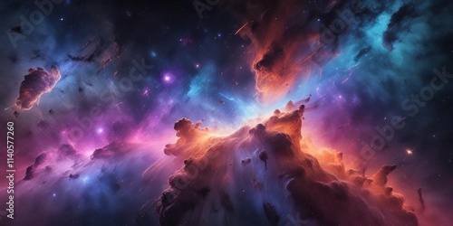 Cosmic background with vibrant colors of nebula and stars against the blackness of space, stardust, nebula