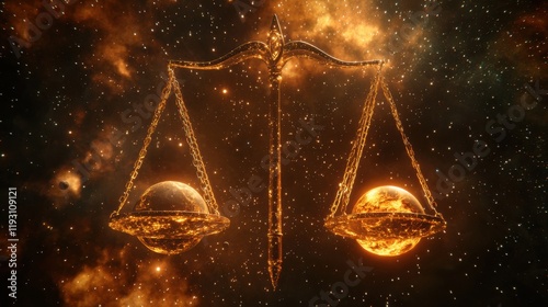 Cosmic balance of justice universal realm digital celestial environment ethereal viewpoint divine concept
