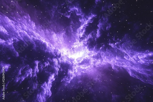 Cosmic cloud formation illuminated in shades of purple against a starry backdrop in deep space