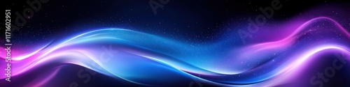 Cosmic energy waves, vibrant pink and blue aurora, deep space background, starry night sky, ethereal nebula, swirling light patterns, celestial phenomenon, galactic colors, interstellar clouds, lumino
