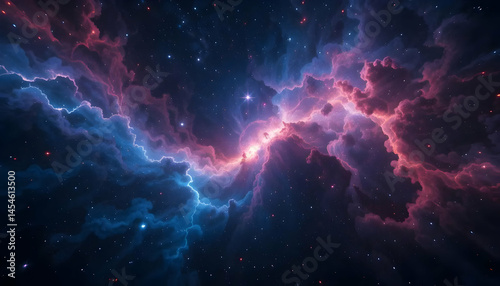 Cosmic Nebula A Stunning Visual of Celestial Collision, Vibrant Hues of Blue and Red Paint a Dramatic Interstellar Scene