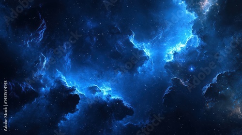 Cosmic Nebula, Blue Gaseous Clouds, Space Exploration, Stars Background, Science Fiction