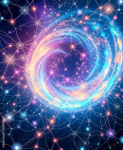 galaxy, cosmic, nebula, art, cybernetic, space, glowing, filament, node, organic, circuit, neural, network, radiant, spiritual, tranquil, starry, night, sky, deep, interconnected, beat, light, intricate, design, aethereal, beauty