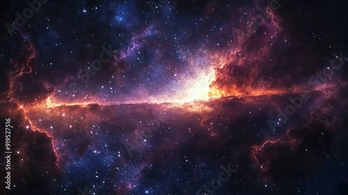Cosmic Nebula with Bright Orange and Purple Clouds
