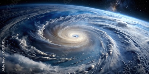 Cosmic photo capturing the epic scale of a typhoon , storm, hurricane, cyclone, weather, extreme, power, natural disaster