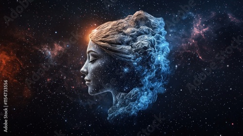 Cosmic woman's profile in a celestial background digital art surreal environment space concept