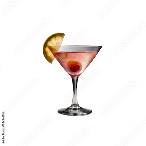 Cosmopolitan Cocktail in Martini Glass with Lemon Twist and Cherry