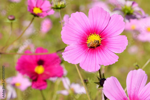 Cosmos flower close-up and bee
