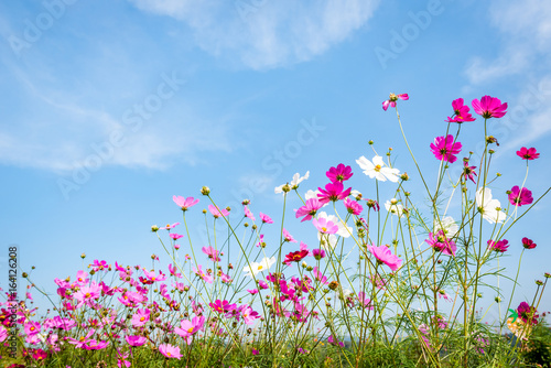 autumn, beautiful, beauty, blooming, blossom, blue, calm, colours, colourful, cosmos, field, flora, flower, fresh, garden, grass, green, landscape, meadow, nature, pink, plant, pretty, purple, sky, spring, summer, white