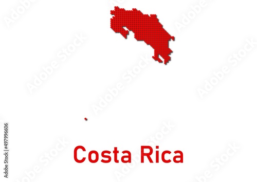 Costa Rica map, map of Costa Rica made of red dot pattern and name.