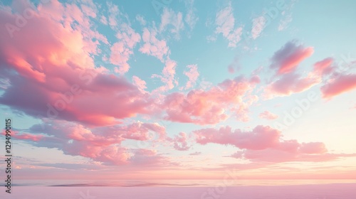 Cotton Candy Sky: A breathtaking panoramic view of a pastel sky, where fluffy, cotton candy-colored clouds drift serenely against a soft, light blue backdrop, creating a dreamy and ethereal ambiance.