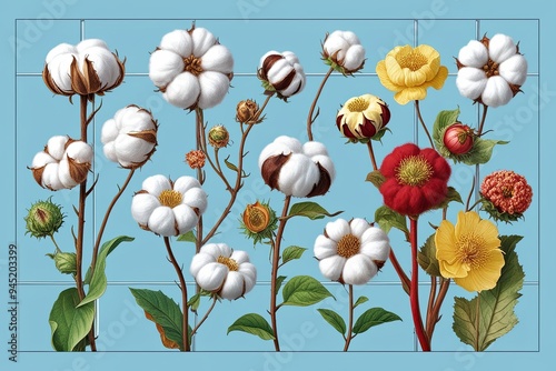 Cotton Flower Illustrations on Transparent Cutout Panel Design