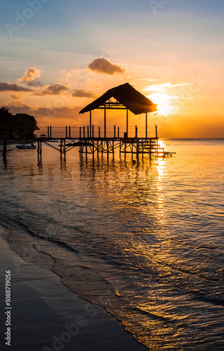 sunset, dock, wharf, bandstand, sunset, sea, water, beach, sun, ocean, heaven, sunrise, nature, summer, evening, landscape, island, maldives, cloud, orange, lake, travel, wave, sand, tropical, red, docked, resort, coast