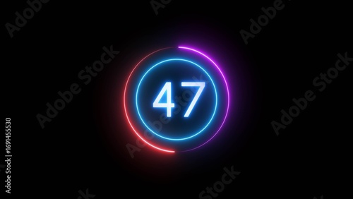 Countdown timer 47 seconds. Neon countdown number illustration.