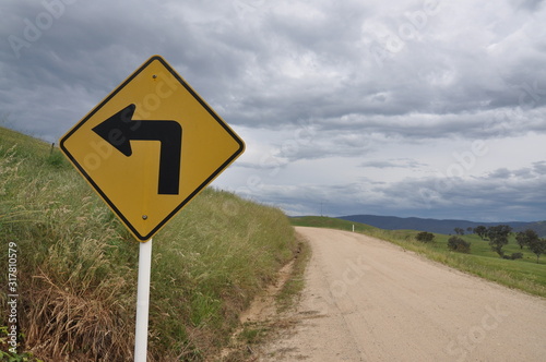 signs, road, warning, traffic, roadsign, yellow, caution, highway, speed, travel, sky, curve, danger, street, crossing, symbol, transportation, landscape, rural, turn, australia, desert, nature, direction, way