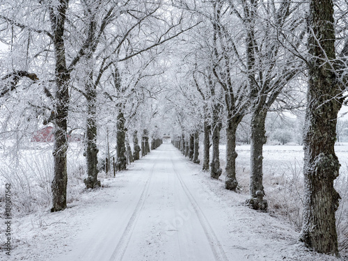 area, background, cold, country, countryside, climate, forest, alley, oak, road, path, tree, sweden, scenery, season, winter, wintery, frost, frosty, glacé, frosted, farm, farmland