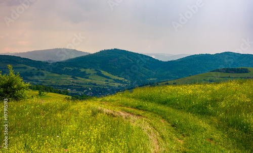 road, field, rural, agriculture, countryside, mountain, landscape, country, lovely, overcast, day, cloud, nature, travel, carpet, provincial, destination, grassy, area, suburb, direction, way, district, dirt road, meadow, suburban, plain, region, ground, pasture, mount, land, mountainous, hump, farmland, scenery, path, agrarian, cropland, transportation, hill, terrain