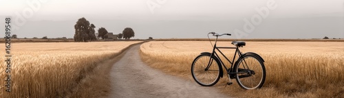 Countryside Path with Vintage Bicycle in Golden Wheat Field