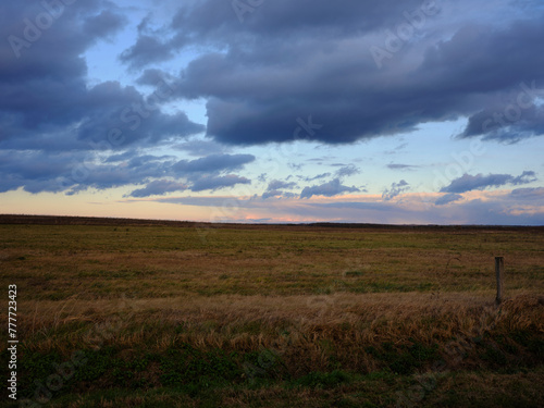 agriculture, cloud, countryside, dusk, evening, farmland, field, grass, horizon, hungary, land, landscape, meadow, nature, nobody, outdoors, outside, pasture, rural, scenery, scenic, sky, sunlight, sunset, weather