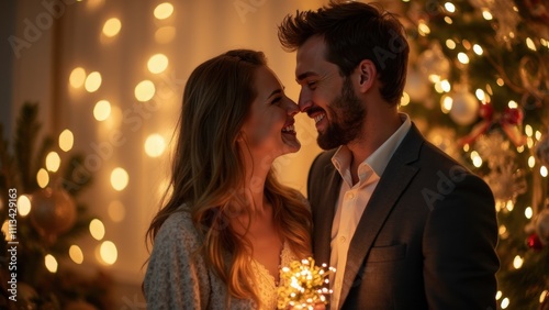 Couple Celebrating Christmas and New Year With Joy and Love in a Cozy, Festive Setting