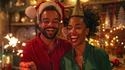 couple, party, joy, friends, happiness, celebration, night, smiling, family, light, christmas, cheerful, excitement, cosy, colourful, indoor, love, fun, hat, holiday, excited, togetherness, sparkler, festive, winter, festivity, bonding, glistering, magic, sparkling, warm, glowing, santa, seasonal, decoration, new year, tradition, merry, twinkle, joyous, ornament, christmas, christmas