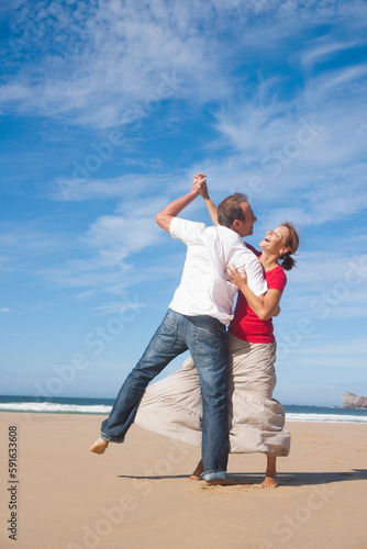 Couple Dancing on the Beach, Camaret-sur-Mer, Crozon Peninsula, Finistere, Brittany, France