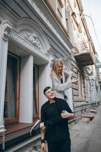 couple, autumn, city, beautiful, human relationships, happy, portrait, woman, man, people, grey, love, adult, photogenic, together, season, attractive, female, happiness, caucasian, building, youth, pant, 2, male, casual attire, black, blond, style, romance, girl, pretty, day, feeling, model, outside, street, shirt, face, dating, background, clothes, boyfriend, valentine, weather, natural, hair