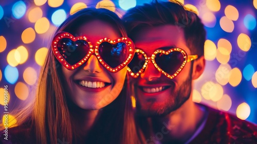 Couple in heart glasses on a festive day.
