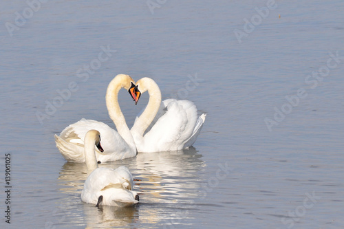 Couple of swans love each others and cuddle with her heads