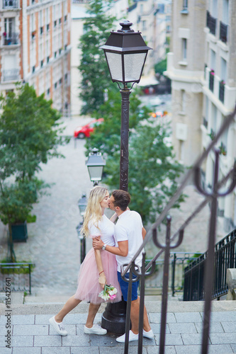 people, human, white, european, woman, girl, man, couple, boyfriend, girlfriend, human relationships, love, lover, heterosexual, date, dating, sweetheart, honeymoon, romantic, romance, together, 2, togetherness, family, happy, happiness, feeling, france, french, paris, parisian, holiday maker, tour tourism, vacation, montmartre, view, city landscape, scenic, tutu, pink, kiss, stair, lantern, street light