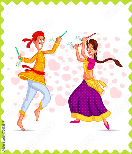 Couple performing Dandiya