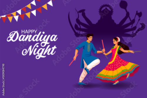 Couple performing dandiya and dancing garba sale and promotion advertisement background