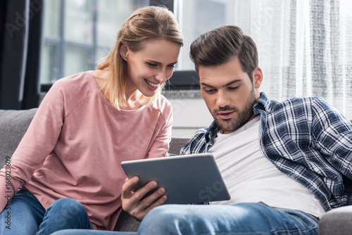 couple using digital tablet