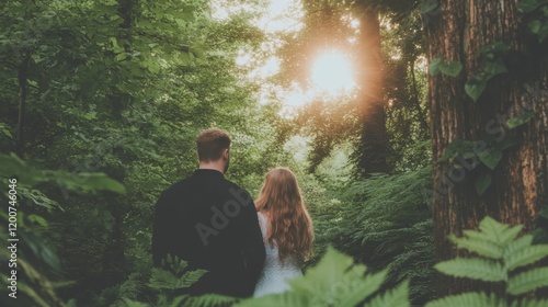 nature, couple, forest, romantic, hand in hand, silhouette, wood, sunlight, peaceful, exploring, walking, serene, path, environment, togetherness, vegetation, fern, scenic, love, discovery, tree, affection, sunlit, landscape, journey, green, joyful, film, tranquil, lifestyle, adventurous, plant, happy, calm, vintage, summer, lush, leaf, photo, backview, gold, warm, vibrant