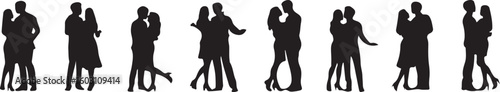 Couples dancing and embracing silhouettes romance