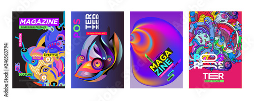 Cover and Poster Design Template for Magazine. Trendy Vector Typography and Colorful Illustration Collage for Cover and Page Layout Design Template in eps10.