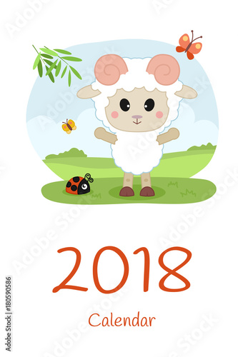 Cover Calendar 2018 with sheep. Happy new year