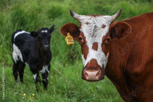 cow, closeup, portrait, number, 2021, label, ear, yellow, room, outdoors, animal, symbol, farm, grass, mammal, cattle, head, pasture, nature, agriculture, summer, look, meadow, nose, dairy, domestic, farming, green, funny, beef, field, background, landscape, farm animal, farmland, grazing, ranch, bovine, calf, face, cute, farm animal, brown, countryside, rural, spring