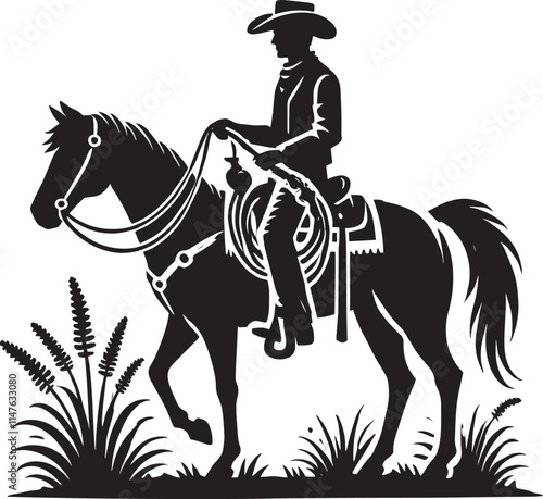 cowboy, horse, equestrianism, animal, jumping, silhouette, drawing, rider, riding, cartoon, horseman, illustration, isolated, man, black, clip art, design element, graphic, art, icon, character, design, symbol, line art, shape, rope, logotype, outline, cowboy hat, roping, rodeo, adventure, mascot, cow, bull, retro, fast horse, action, cut-out, farm, artwork, vector