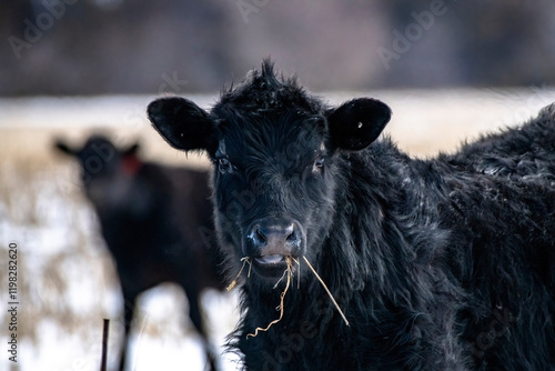 black, cow, farm animal, field, mammal, midwest, nebraska, nobody