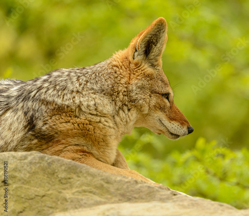 animal, coyote, nature, wildlife, wild, mammal, canis, outdoors, predator, carnivore, wolf, beast, canino, dog, forest, creature, grey, natural, fur, danger, hunter, field, nose, eye, hunting, closeup, park, outside, single, zoo, white, stare, furry, observing, head, portrait, close, lying down, face, rocky, rock
