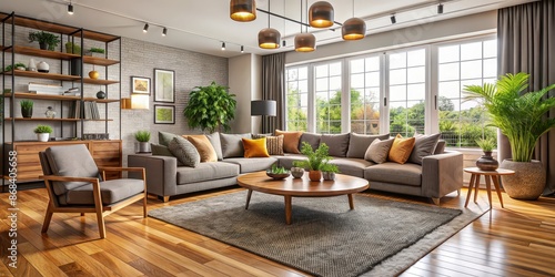 Cozy and spacious living room interior with modern furniture and decor, living room, interior design, home decor