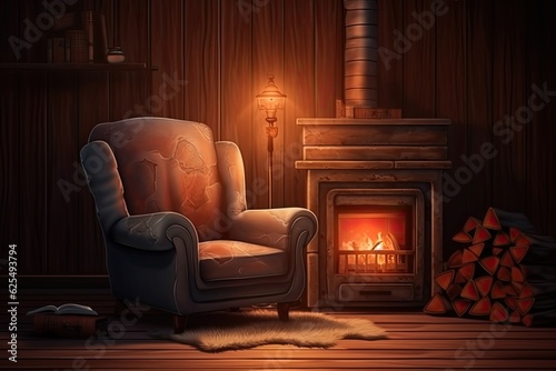 Cozy Armchair and Warm Fireplace: Experience Comfort and Relaxation with a Crackling Fire, generative AI