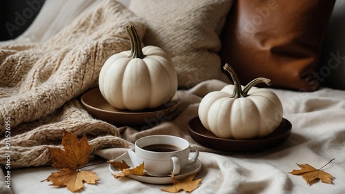 Cozy autumn pumpkin book relax chill at home a serene and comforting atmosphere. halloween