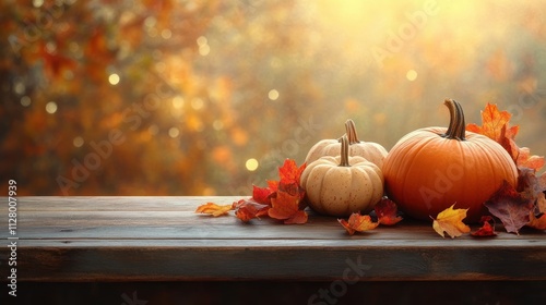 thanksgiving, autumn, pumpkin, leaf, wooden, table, bokeh, background, seasonal, decor, warm, inviting, still life, golden light, rustic, fall, template, festive, colourful, smooth, free space, copy space, advertising, poster, autumn color, picnic, harvest, blurry, orange, brown, empty, natural, design, wood, counter, flare, sunlight, season, decoration, home, warmth, nature, texture