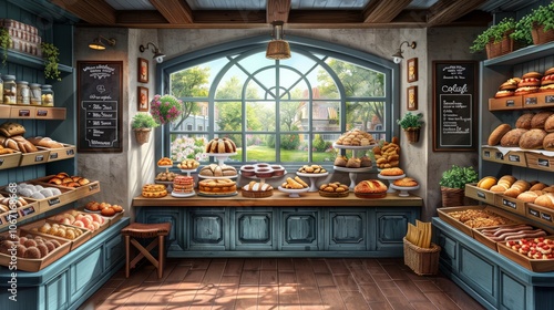 cozy bakery with freshly baked bread and pastries, highlighting the warmth and comfort of baked goods.