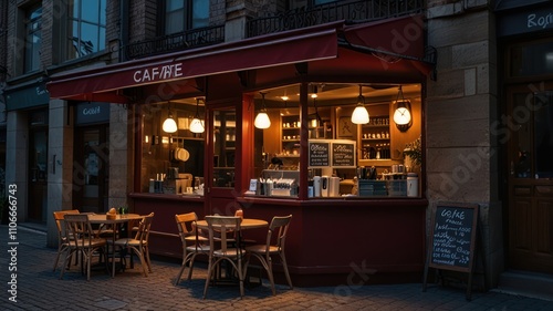 cafes, eatery, interior, design, modern, dark, wood, table, chair, lighting, lamp, bulb, pendant, light, bar, counter, shelf, menu, hot drink, espresso, machine, plant, pot, window, city, view, brown, leather, seating, cosy, atmosphere, warm, inviting, stylish, elegant, sophisticated, moody, comfortable, mellow, vintage, retro, aesthetic, space